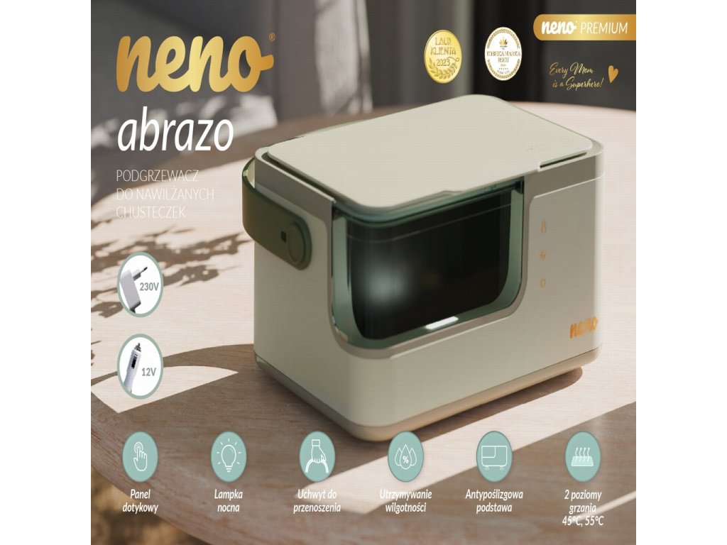 Zabezpečte svojmu bábätku maximálne pohodlie pri každej výmene plienky! Neno Abrazo je prémiový ohrievač vlhčených utierok, ktorý udržiava utierky teplé a vlhké po celý deň – ideálne na citlivú detskú pokožku.Vlastnosti: