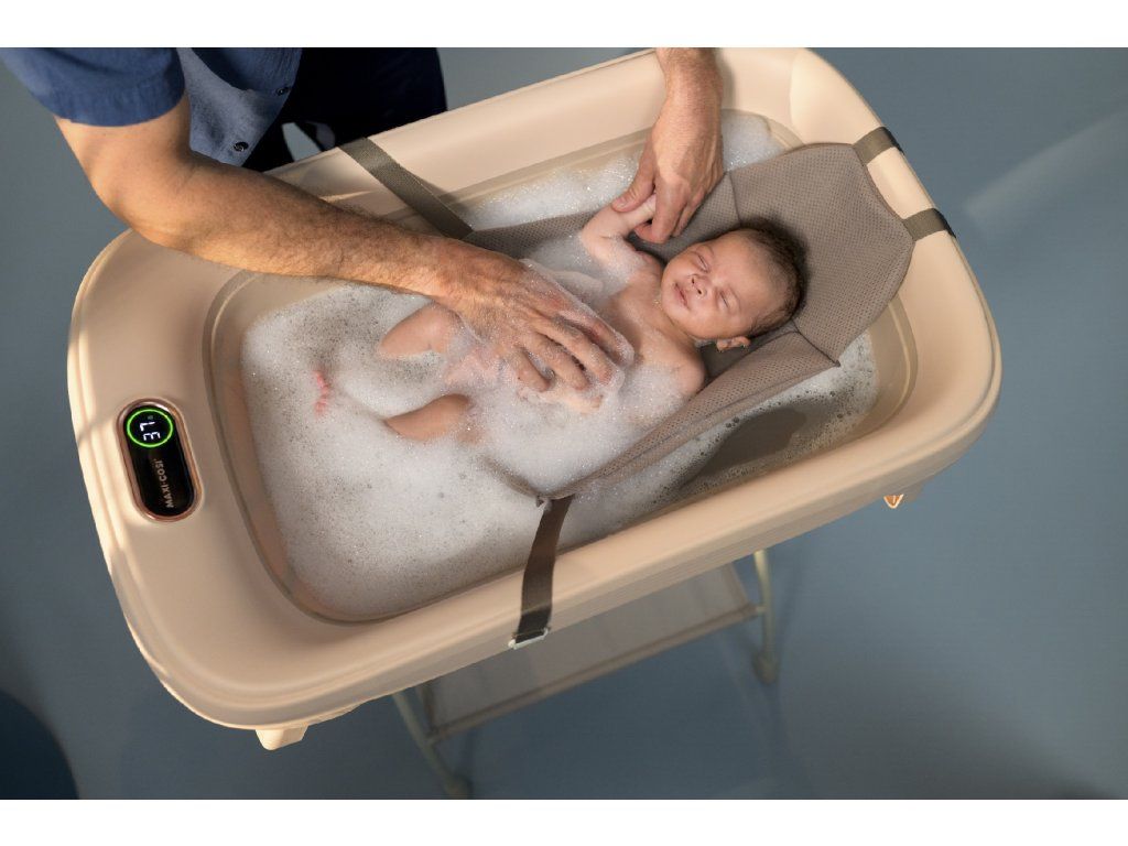 Skladacia vanička Maxi-Cosi Indigo Plus je šikovná vanička, ktorá zvládne kúpanie vášho dieťaťa od narodenia až do 4 rokov. Vyniká komfortom pre novorodencov, presným strážením teploty a skladnosťou – po kúpaní ju jednoducho zložíte naplocho a odložíte. Pre bábätko aj batoľa – bez dokupovania ďalších riešení Súčasťou vaničky je vyberateľná novorodenecká vložka QuickDry, ktorá bábätko stabilne podopiera v ľahu. Akonáhle dieťa zvládne sedieť, vložku jednoducho odoberiete a vanička ďalej slúži ako priestranná vaňa pre batoľa. Teplota pod kontrolou Integrovaný teplomer HighSense meria teplotu pri dne vaničky, kde býva voda najteplejšia. Praktický je aj farebný indikátor: modrá = studená červená = horúca zelená = ideálna 35–38 °C Stabilná a pohodlná Vanička má mäkkú silikónovú podložku s protišmykom, aby dieťa počas kúpania nekĺzalo. Stabilitu zaisťujú protišmykové prvky na nohách. Rýchle použitie, rýchle upratovanie Indigo Plus má skladaciu konštrukciu s výsuvnými nohami – pripravená je behom chvíľky a po kúpaní ju ľahko zložíte. Vodu vypustíte cez veľký výpustný otvor a vaničku môžete zavesiť za integrovaný háčik, aby rýchlo uschla. Hlavné výhody použitie od narodenia do 4 rokov vyberateľná novorodenecká vložka QuickDry integrovaný teplomer HighSense + farebný indikátor bezpečnej teploty protišmyková mäkká podložka stabilné nohy s protišmykom skladanie naplocho pre ľahké skladovanie veľký výpustný otvor pre rýchle vypustenie vody integrovaný háčik na zavesenie a sušenie hladké materiály na ľahké čistenie moderný dizajn do kúpeľne Rozmery (d × š × v): 86 × 51 × 24 cm Vhodné pre deti od narodenia do 4 rokov.Dodatočné parametre
