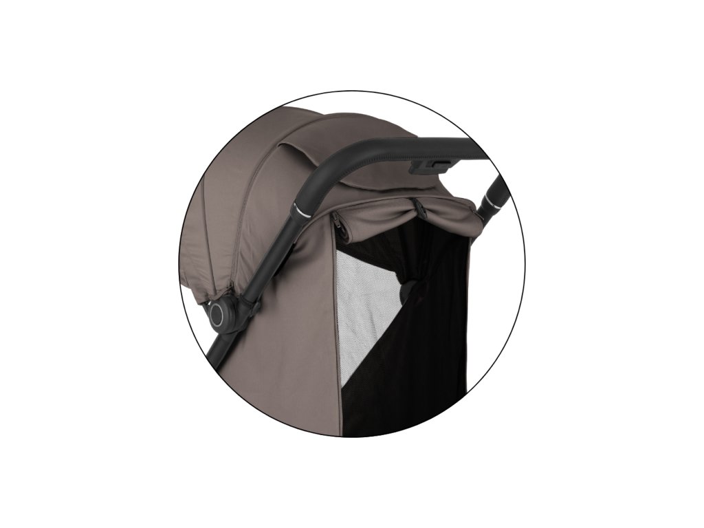- Rozšíriteľná strieška s integrovaným šiltom s ochranou UPF50+ chráni pred ostrým slnkom, zatiaľ čo rodičovské okienko s tichým magnetickým uzáverom umožňuje nenápadný dohľad bez rušenia dieťaťa.
