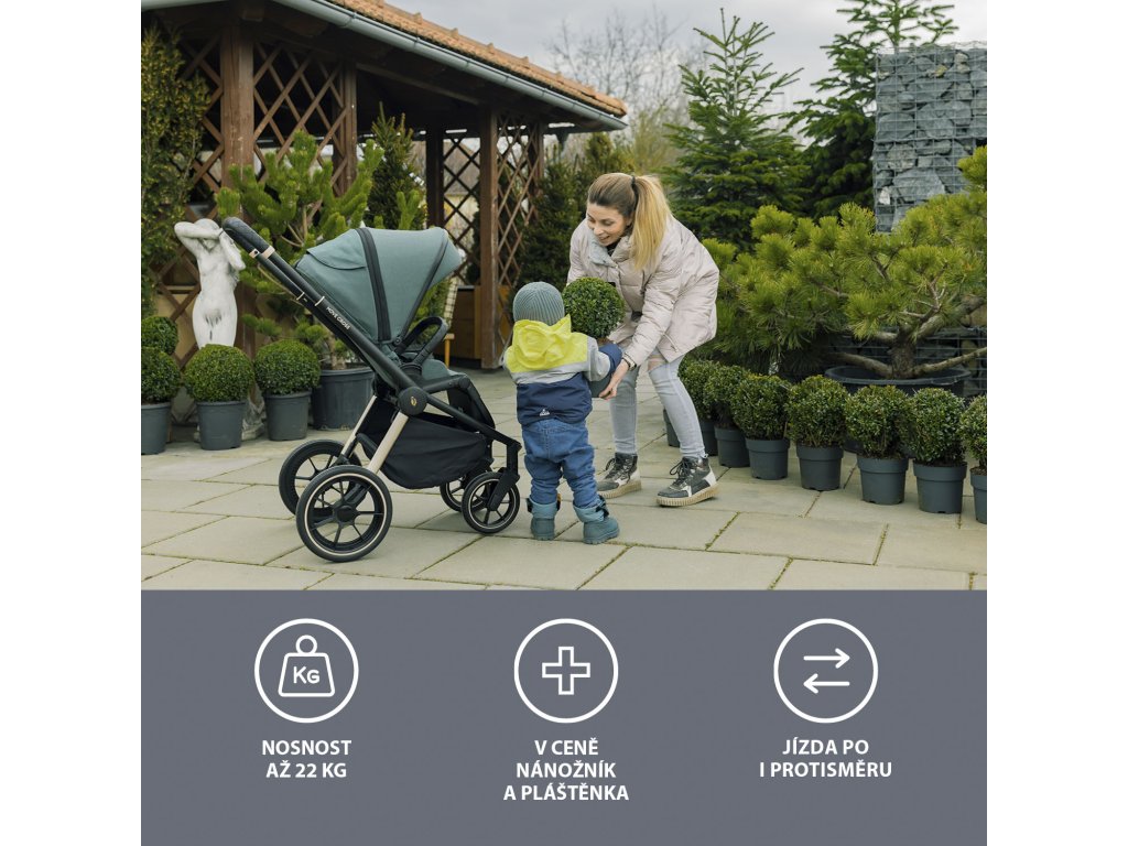 Extra veľké gumové kolesá s mäkkým odpružením hladko prevezú vaše dieťa cez všetky prekážky. Kočík Move Cross je ideálnou voľbou pre aktívne rodiny – zvládne mestské chodníky aj prírodný terén a unesie deti až do 22 kg.